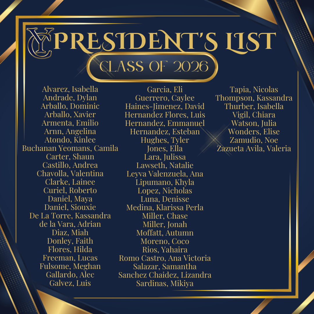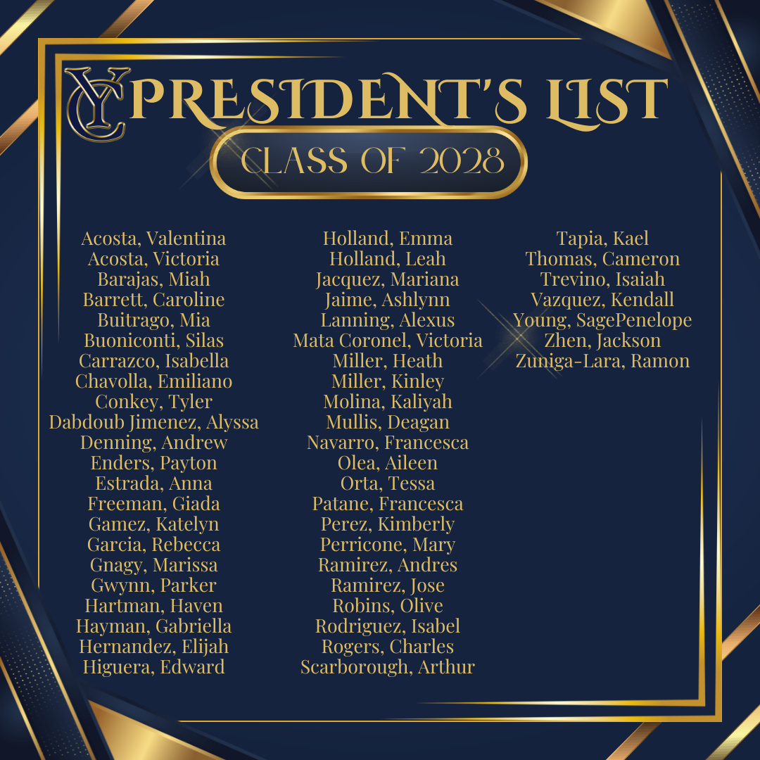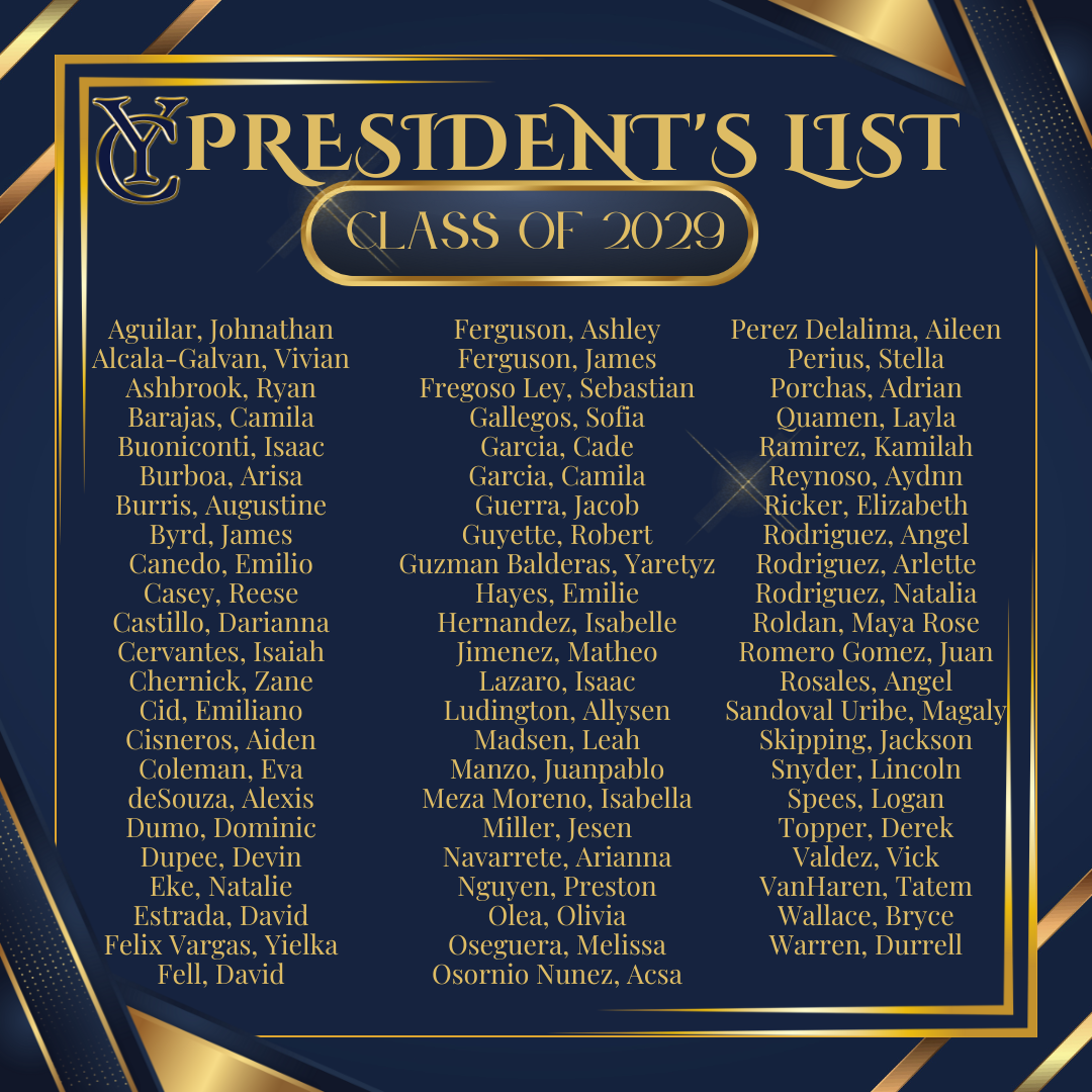 2025-2026 Semester 1 PRESIDENT'S LIST
