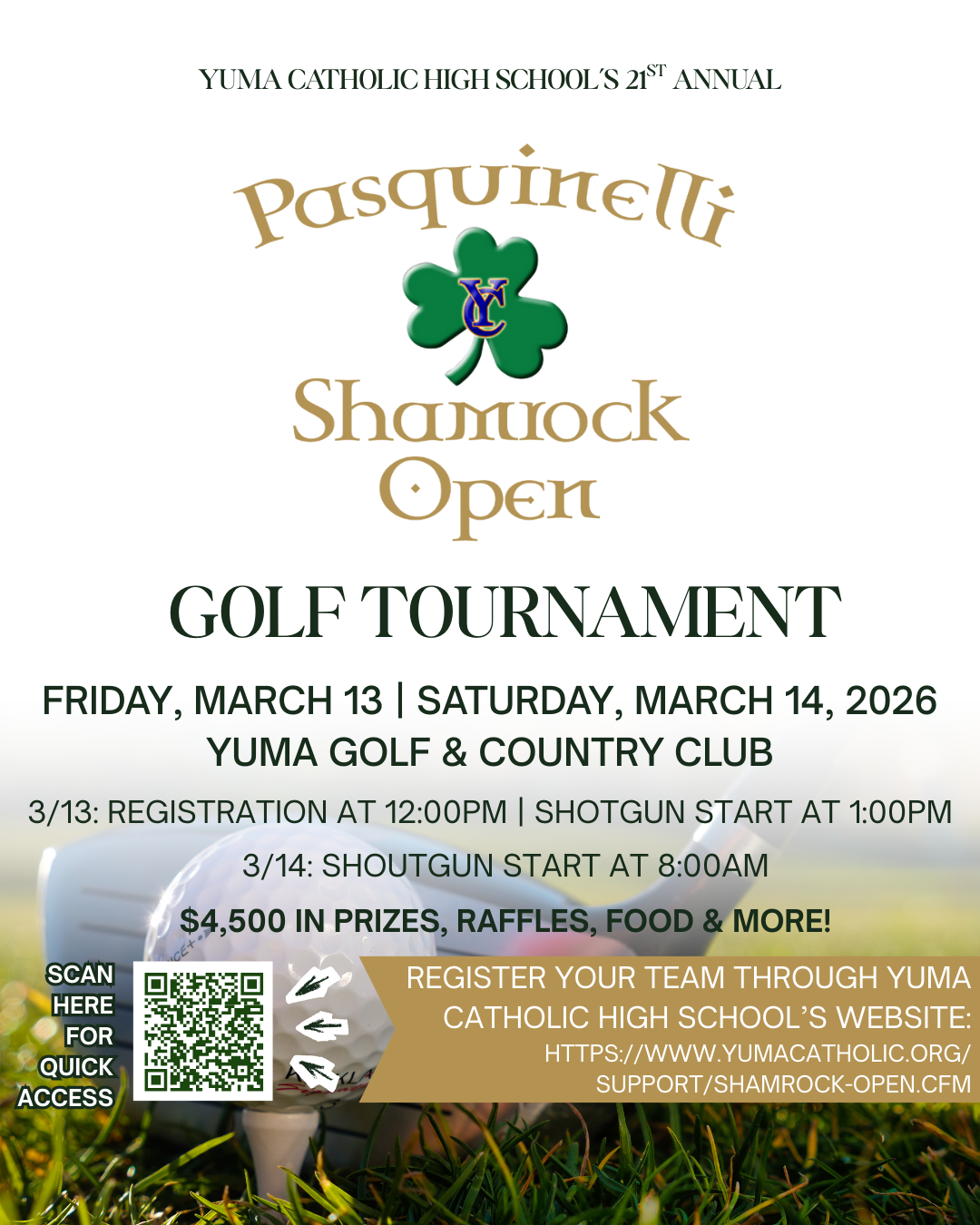 Pasquinelli Shamrock Open Donate today! Ways to Give Gun Raffle Homecoming Alumni Tailgate Day of Giving Rib Cook-Off Pasquinelli Shamrock Open Blue & Gold Gala Cow Patty Bingo 2024-2025 Annual Report Giving via Arizona Tax Credit Thank you for your support!Congratulations to the winners!
